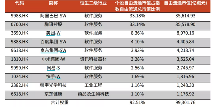 恒生科技指数前十大成分股一览
